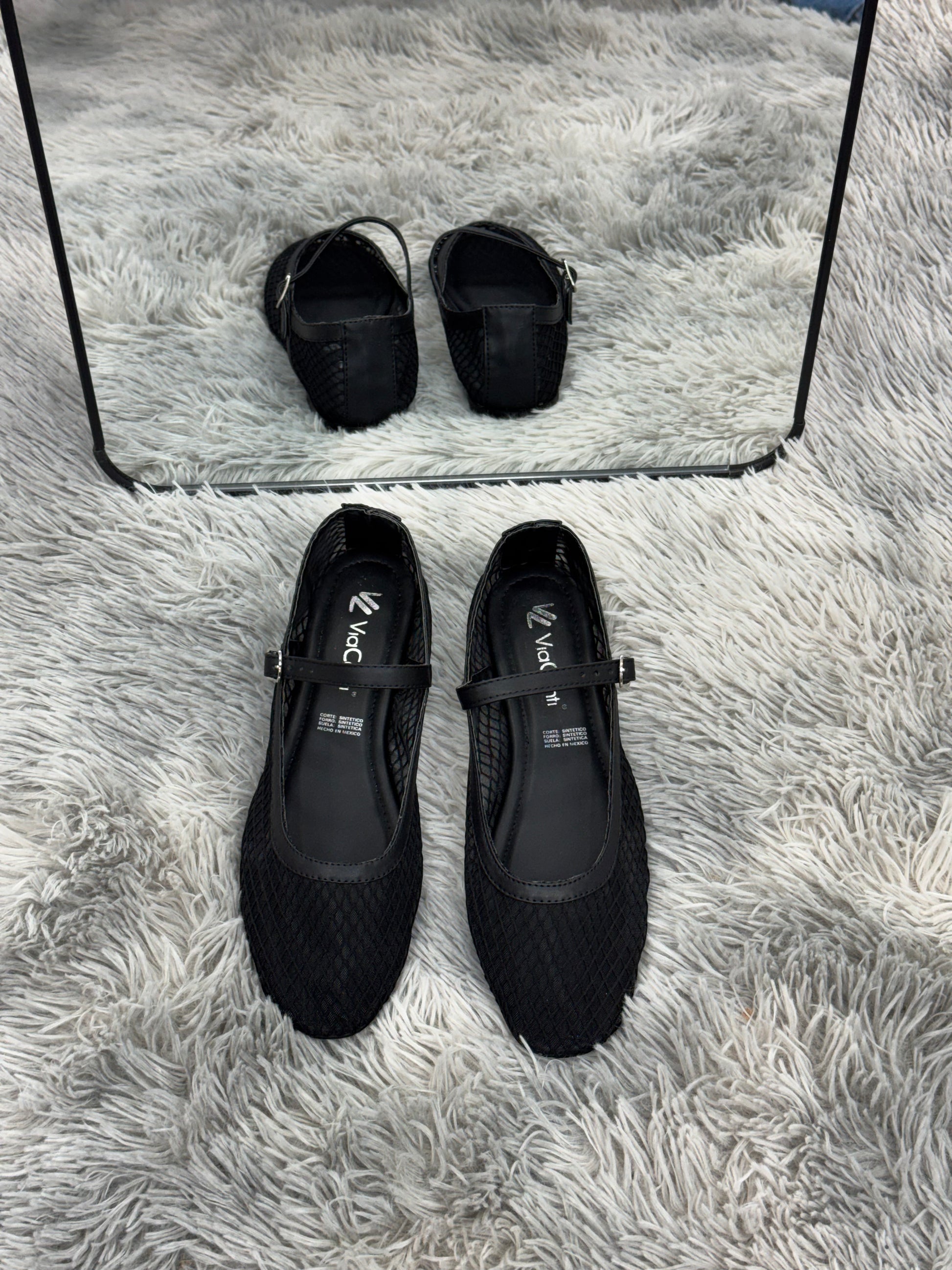 Balerina de piso material tipo malla con transparencia con hebilla para ajuste. Superficie en malla sintetica