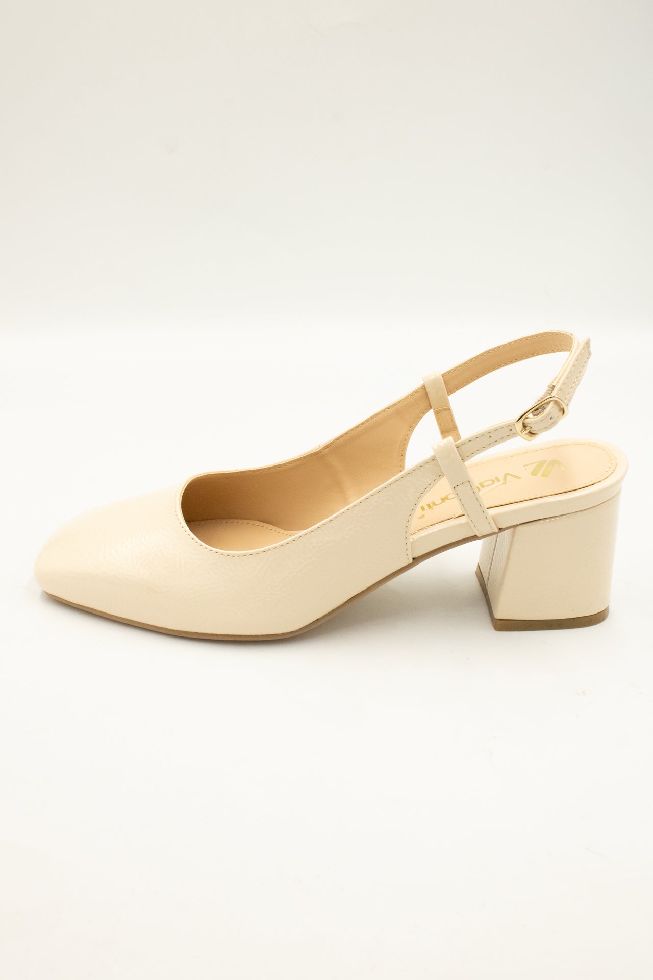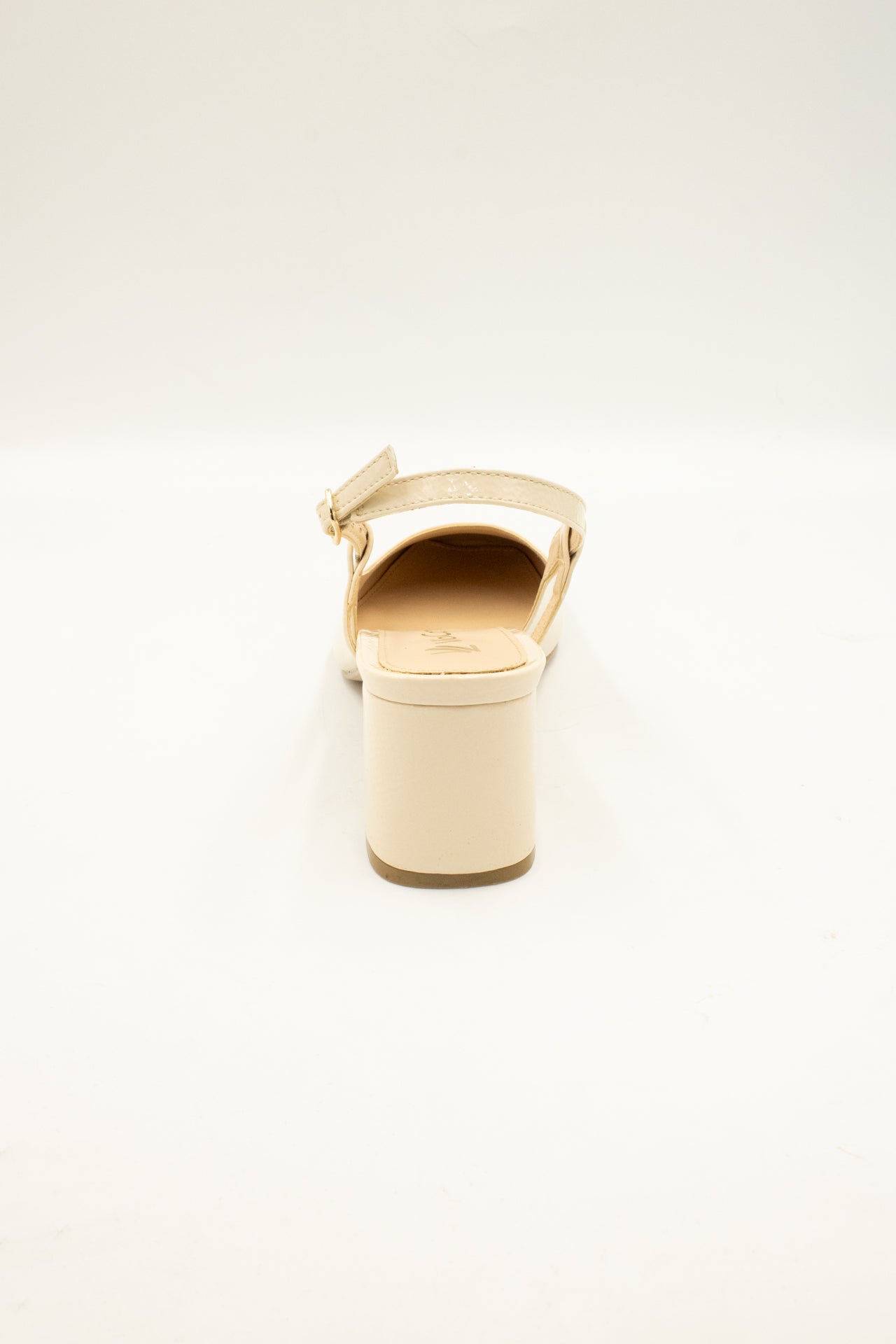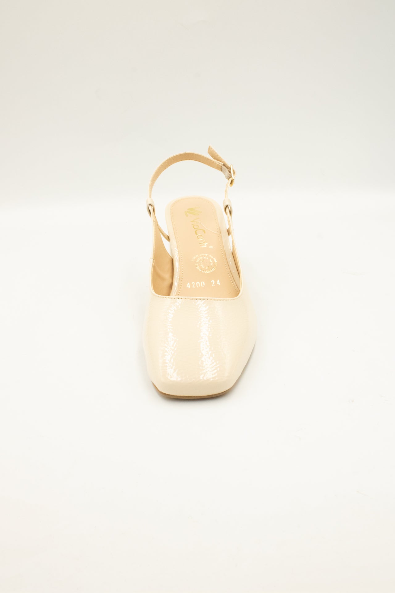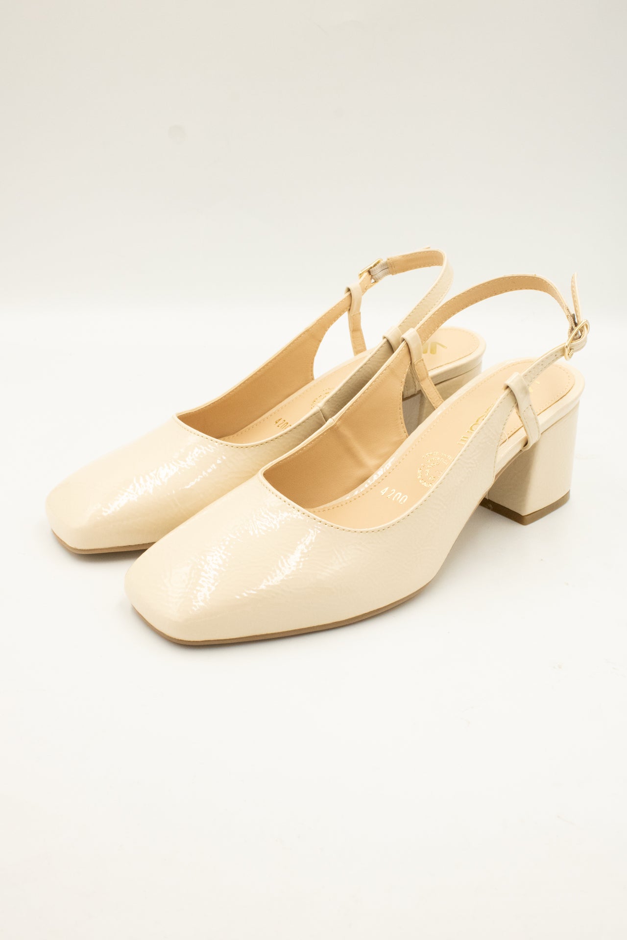 Zapatilla de tacón, en charol arrugado y punta cuadrada. Superficie en charol miga, sintética.