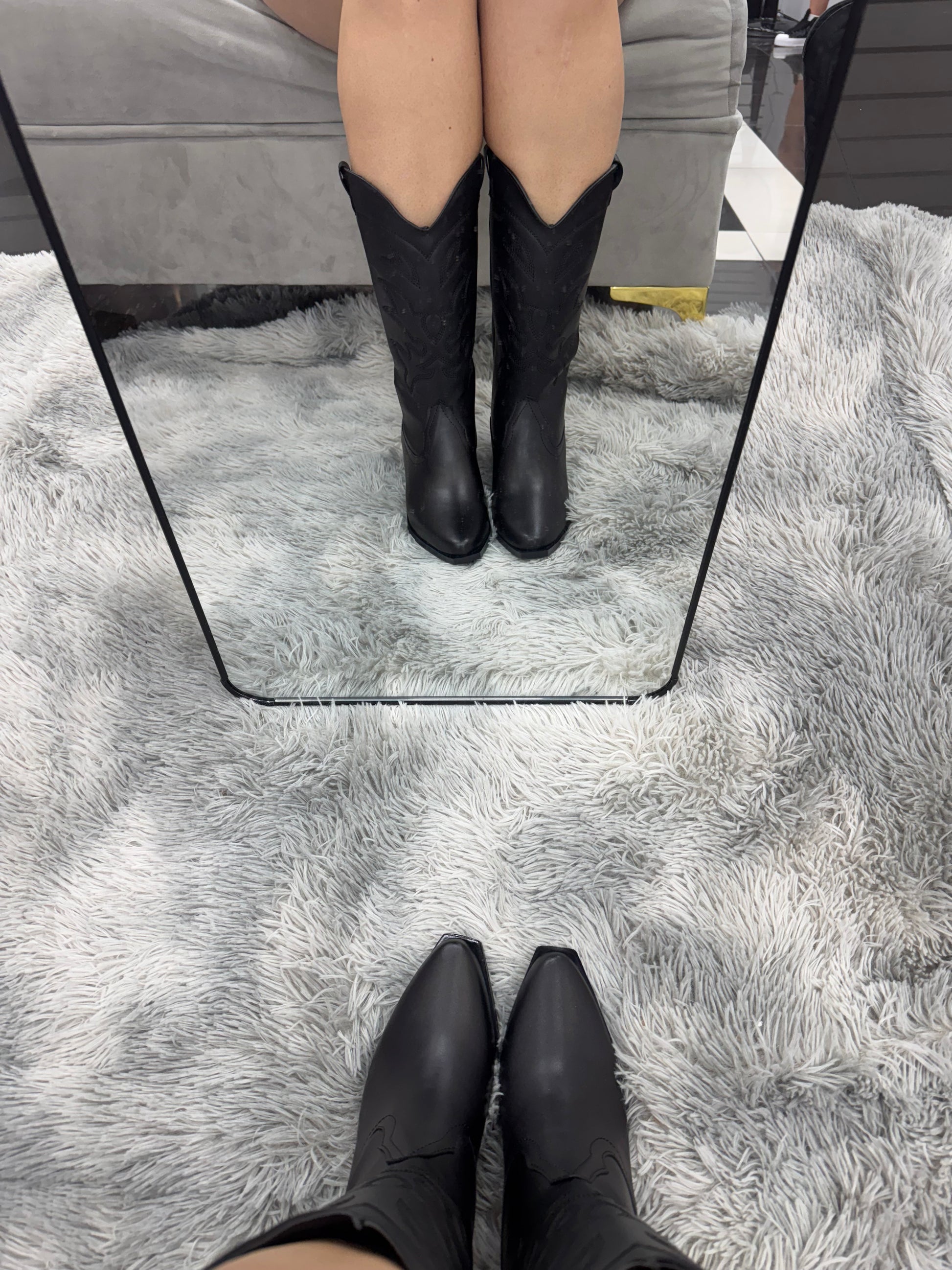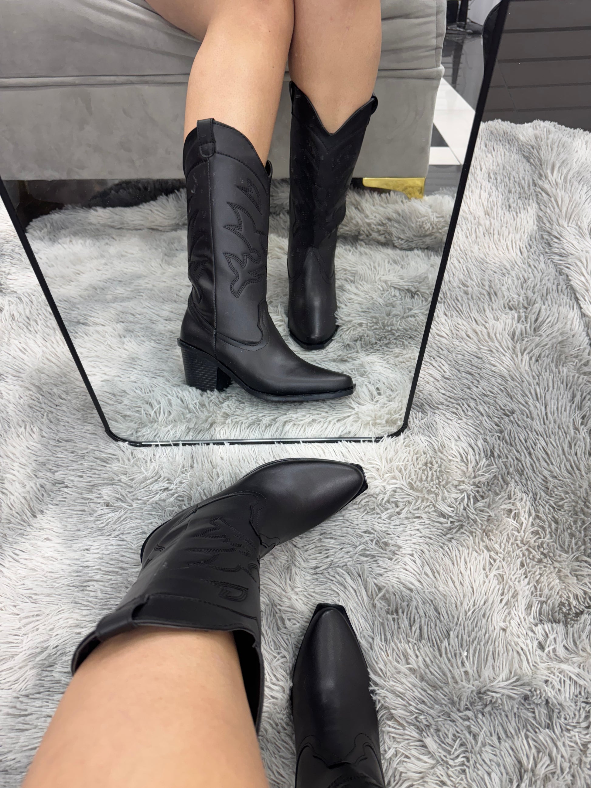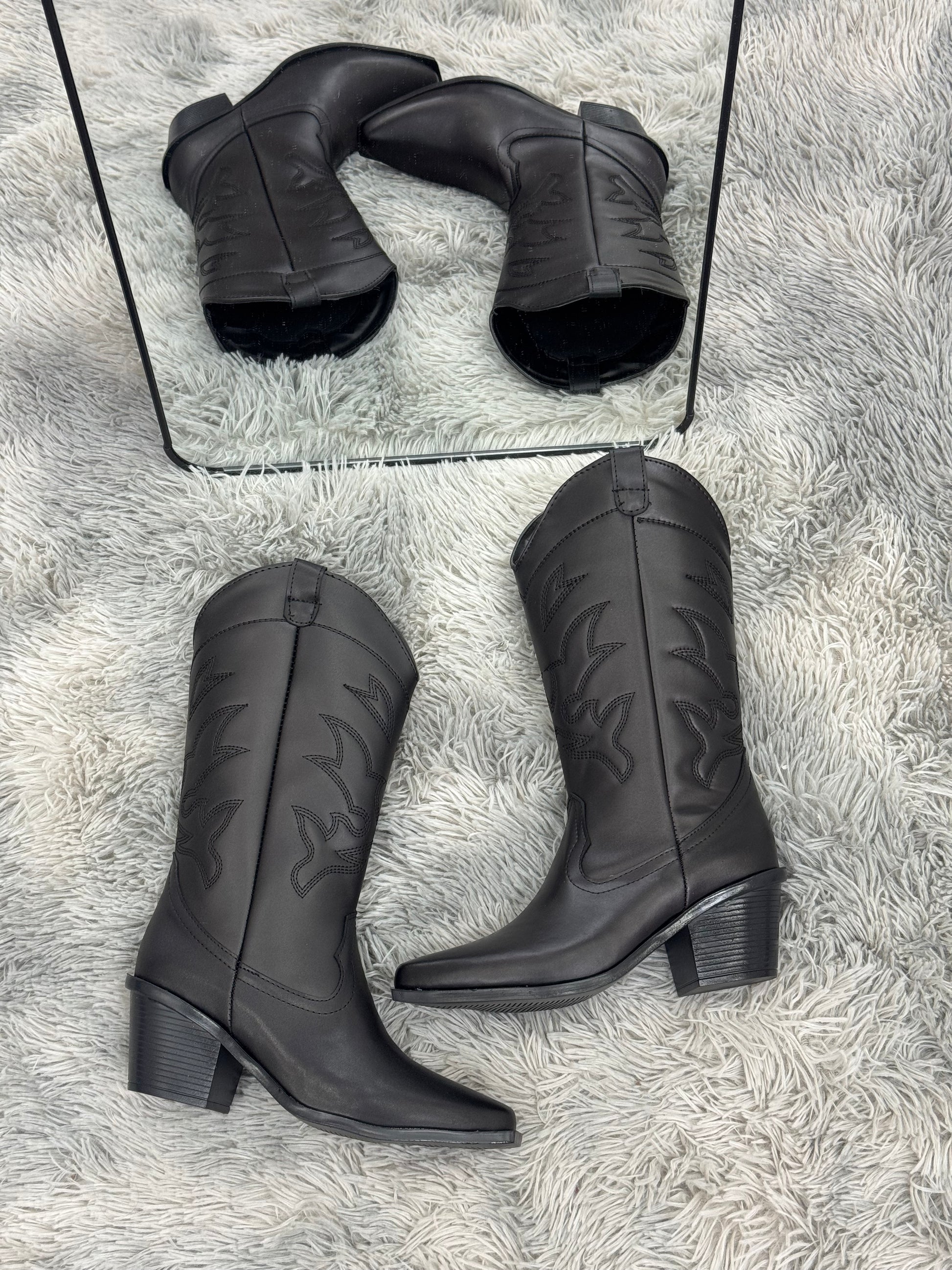 JANE bota vaquera mediana con bordado en tubo negra