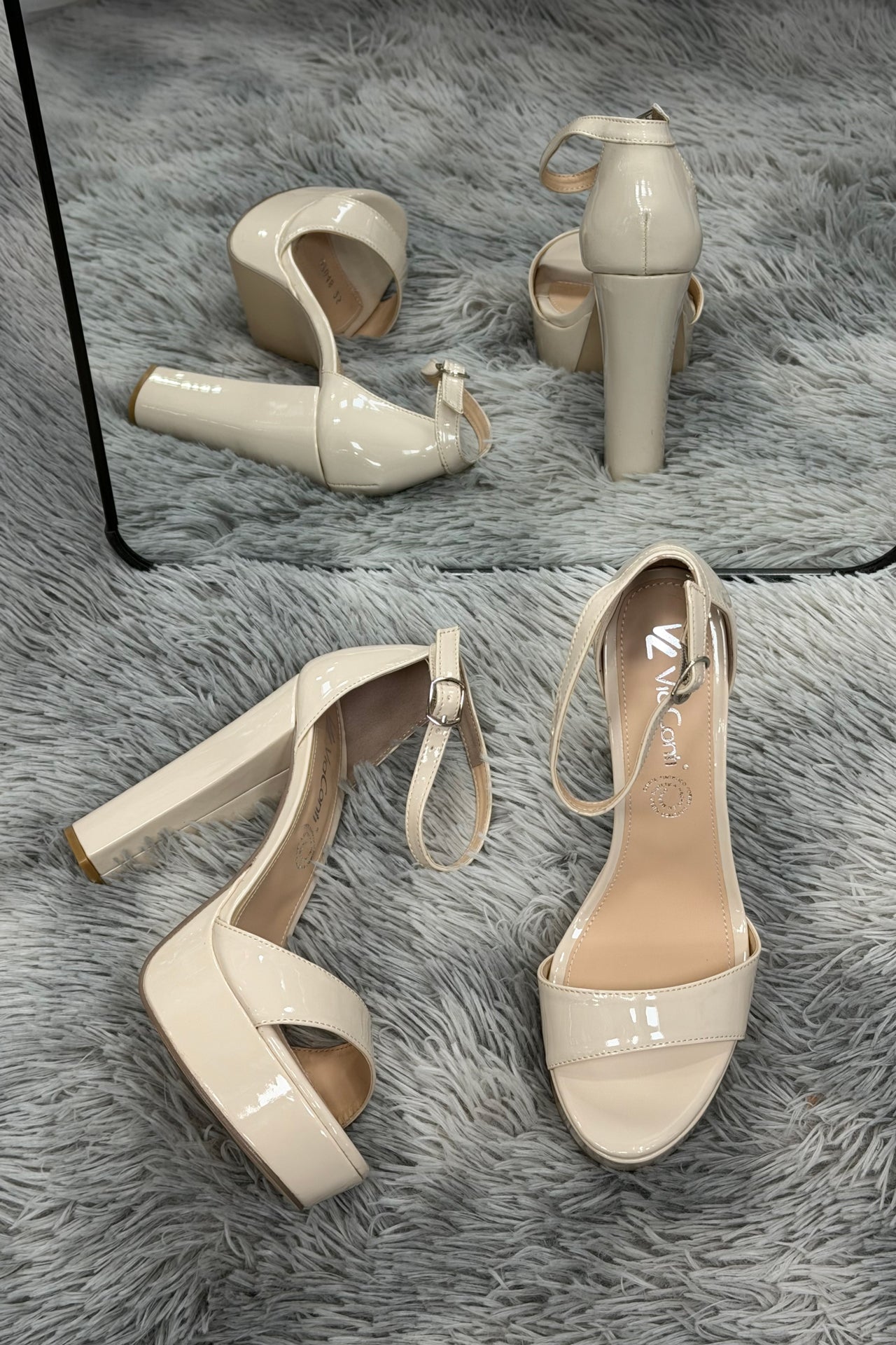 Sandalia de tacón y media plataforma, pulsera con hebilla de ajuste en talón. Superficie en miga, sintético.